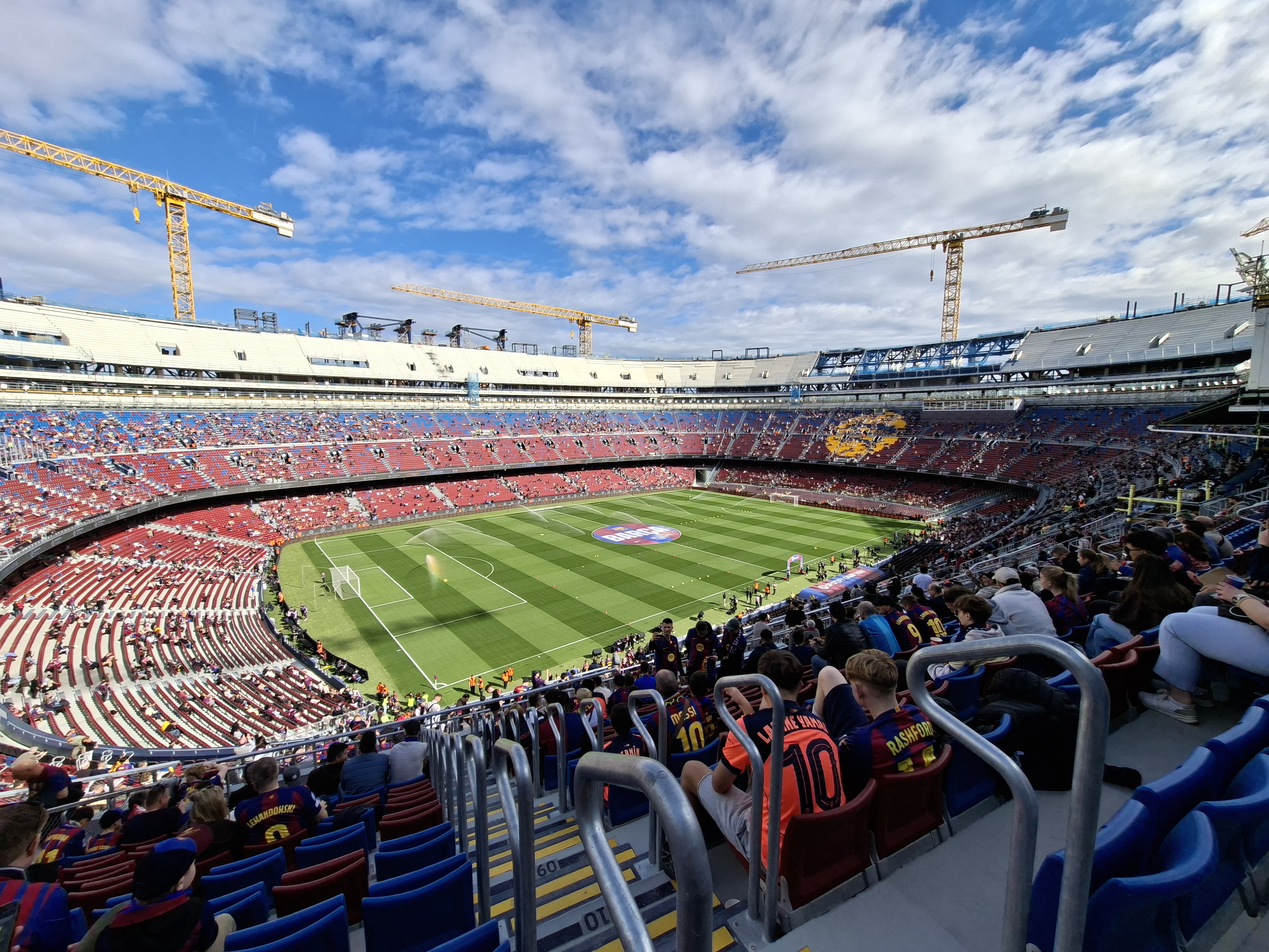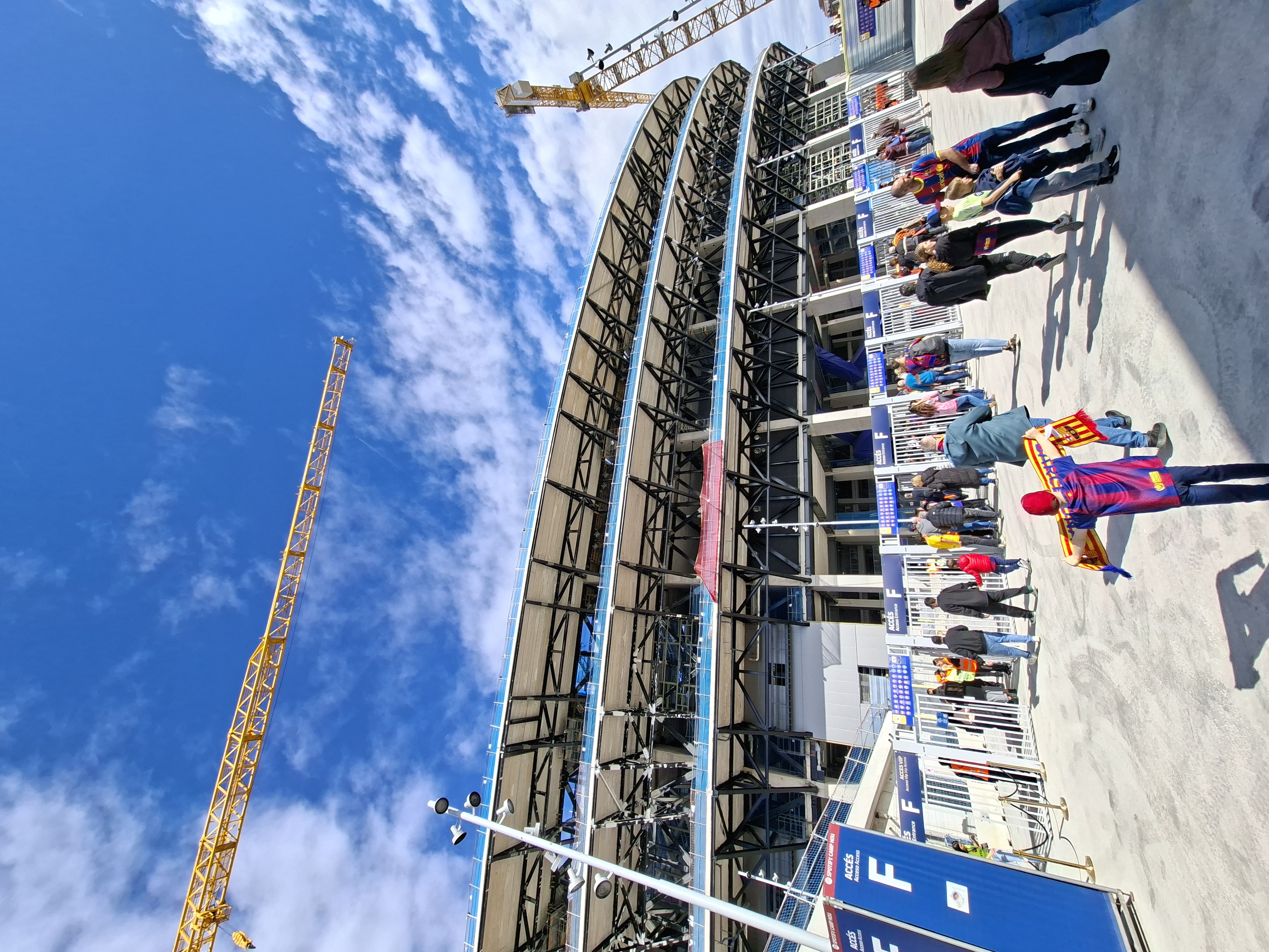 Ke Camp Nou jsme vyrazili právě ve chvíli, kdy přijížděli hráči Sevilly, ale hned 2 minuty nato přijeli i hráči Barçy. Stadion je každým dnem blíže dokončení a vypadá opravdu hezky, ale samozřejmě ještě je spousta práce před námi.