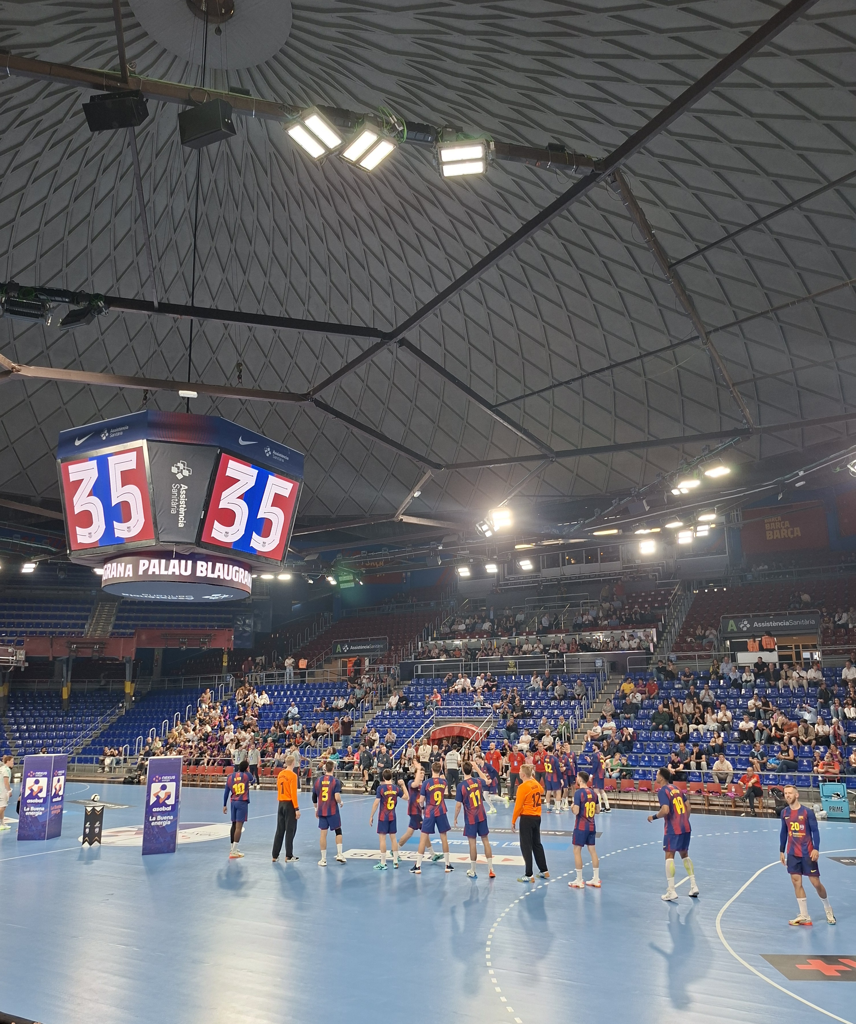 Pak nás čekal první z mnoha zápasů – tentokrát házená. Rozhodnuto bylo vlastně za 2 minuty a není divu – Barça v lize ještě neprohrála a výhrou v tomto utkání si zajistila 16. titul v řadě.