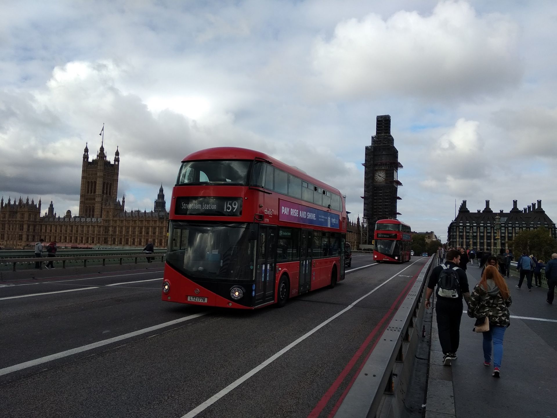 Moje cesta začala příjezdem do Londýna na stanici Liverpool Street asi v 9 hodin ráno. Odsud jsem pokračoval procházkou přes Tower Bridge do centra Londýna, abych si užil taky nějakých památek. Pokračoval jsem po břehu Temže až k opravovanému Big Benu, který mě trošičku zklamal… Zaprvé mě zklamalo, že se opravuje, a zadruhé, že není až tak velký jak jsem čekal. Upřímně, u nás ve Velkém Meziříčí máme skoro stejně velkou věž s hodinami. Odsud jsem pokračoval k Buckinghamskému paláci přes Hyde Park až k místu prvního srazu s dalšími kolegy výletníky u Marble Arch, před hotelem Cumberland, kde proběhlo předání lístků. Zde již začala být vyšší koncentrace fanoušků našeho milovaného klubu a dokonce i pár fanoušku na chvíli okupovalo mikrofon místního zpěváka.